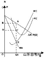 如图:MR=MC的产量是最佳产量,OQ1为利润最大时的产量,此时,平均收益为OB,平均成本为OD。