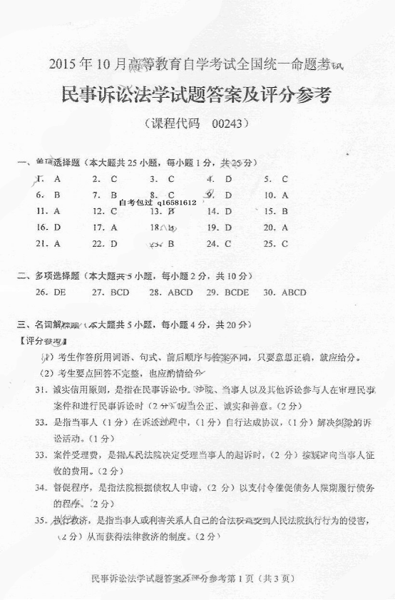 本文标签:海南自考 教育类 2021年10月海南自学考试 民事诉讼法学试卷
