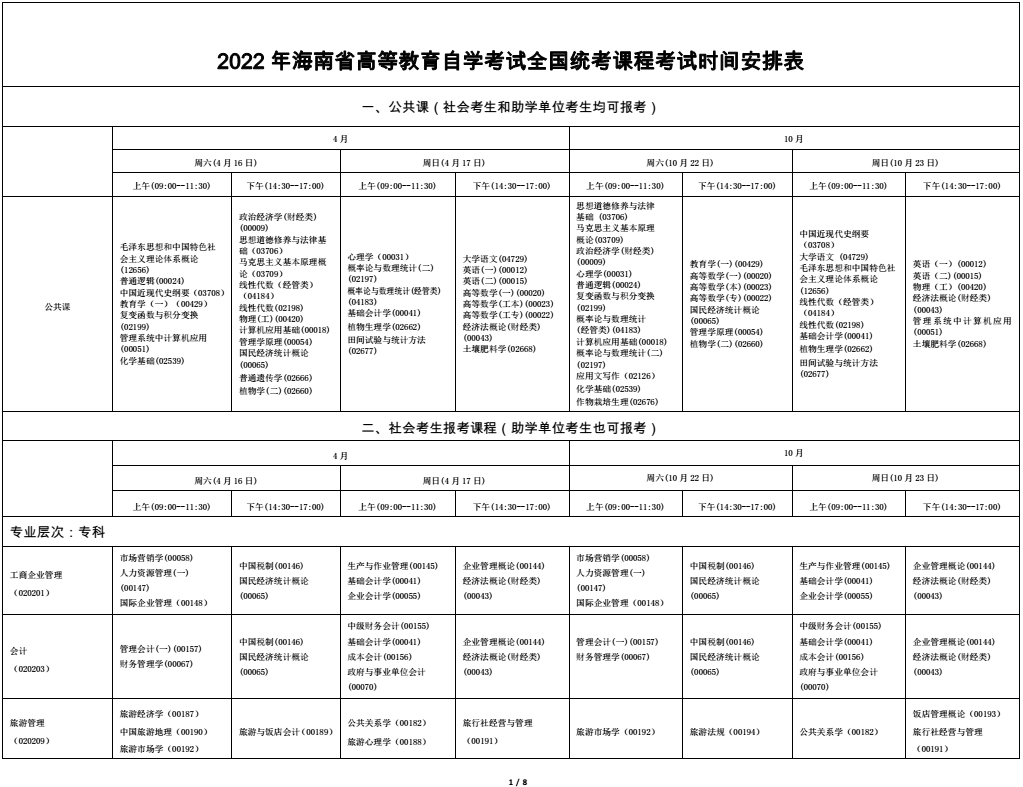 本文标签:海南自考 自考安排 2022年海南省自学考试专业课程开考安排表