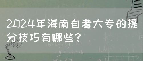 本文标签:海南自考 自考大专 2024年海南自考大专的提分技巧有哪些?
