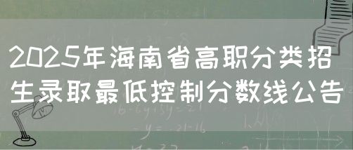2025年海南省高职分类招生录取最低控制分数线已划定,现公布如下: