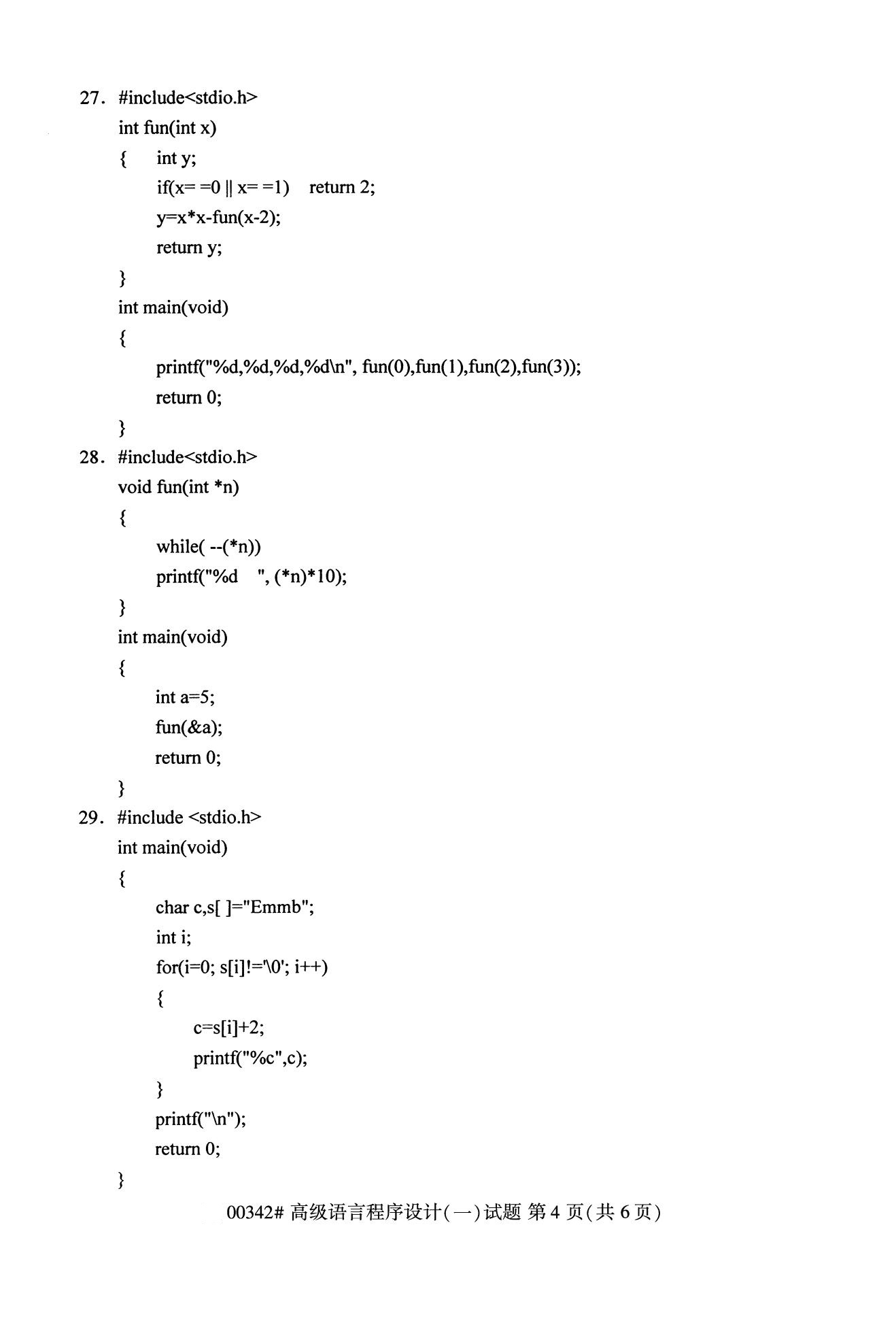 本文标签:海南自考 工学类 2020年10月海南自考高级语言程序设计00342真题