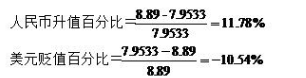 【题2—2】2005年9月8日$1=¥8.890,2006年9月8日$1=¥7.9533。要求:计算人民币升值百分比和美元贬值百分比。