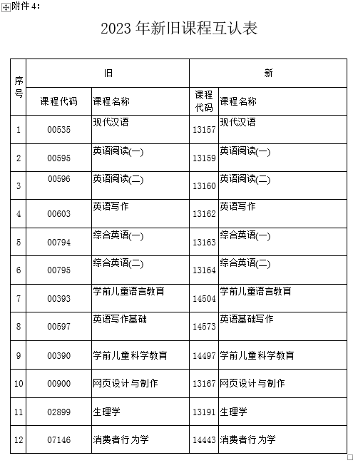 本文标签:海南自考 自考答疑 2023年海南自考新旧课程互认表